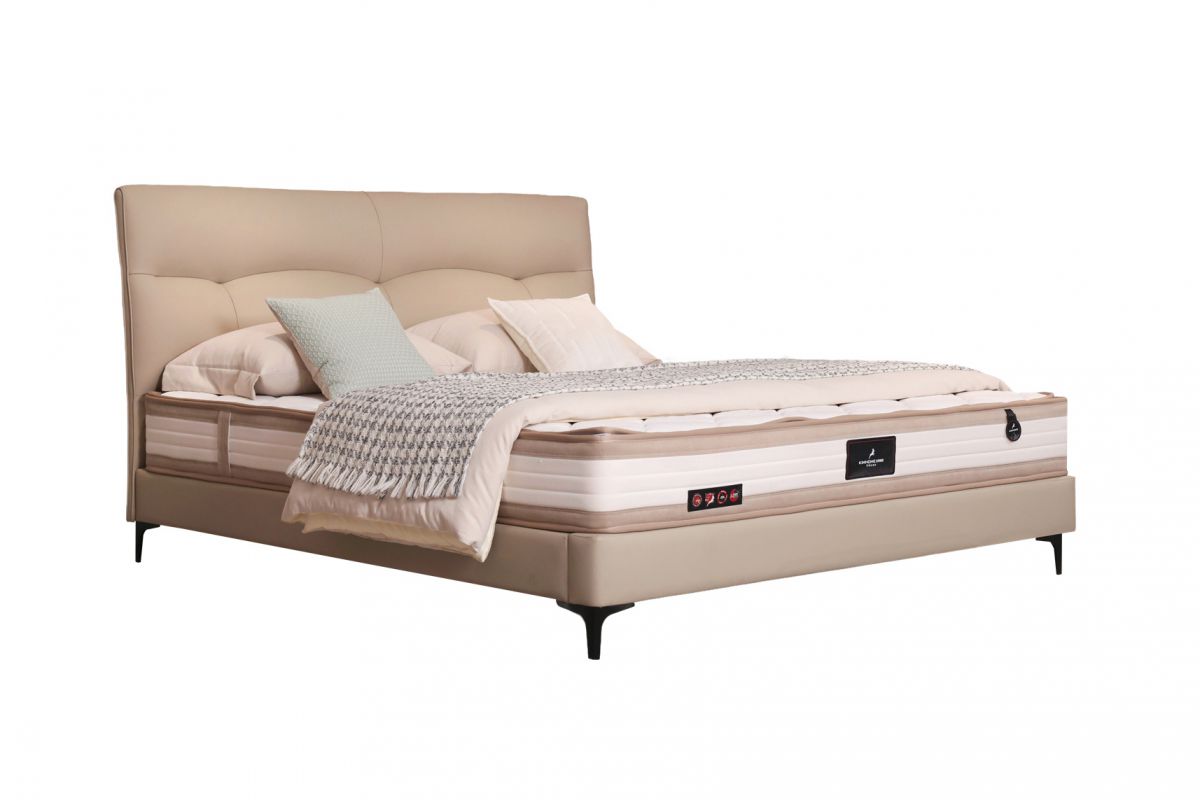接触面头层牛皮;床头和床边;实木+实木多层板;床背+床侧PU皮;高回弹定型环保海绵;