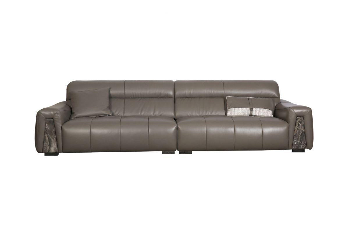 大理石;中厚摔亮头层牛皮;靠包、坐包、扶手包海绵填充;俄罗斯进口落叶松;扶手厚36,扶手高53,座高42;