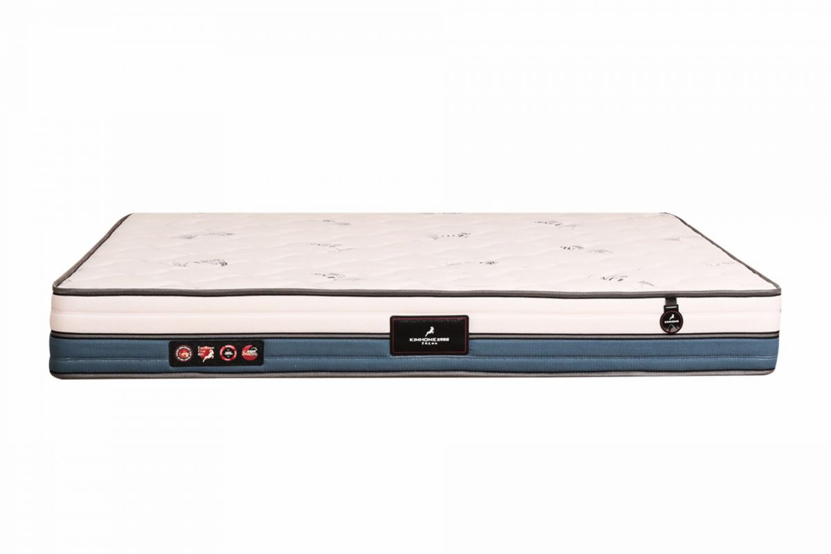 240克亲肤针织面料,2公分高回弹海绵,1.2公分黄麻,2.3线3.5芯高碳锰钢大芯邦尼尔床网,平衡耐磨环保棉,四周海绵封边工艺,透气3D网格布底面