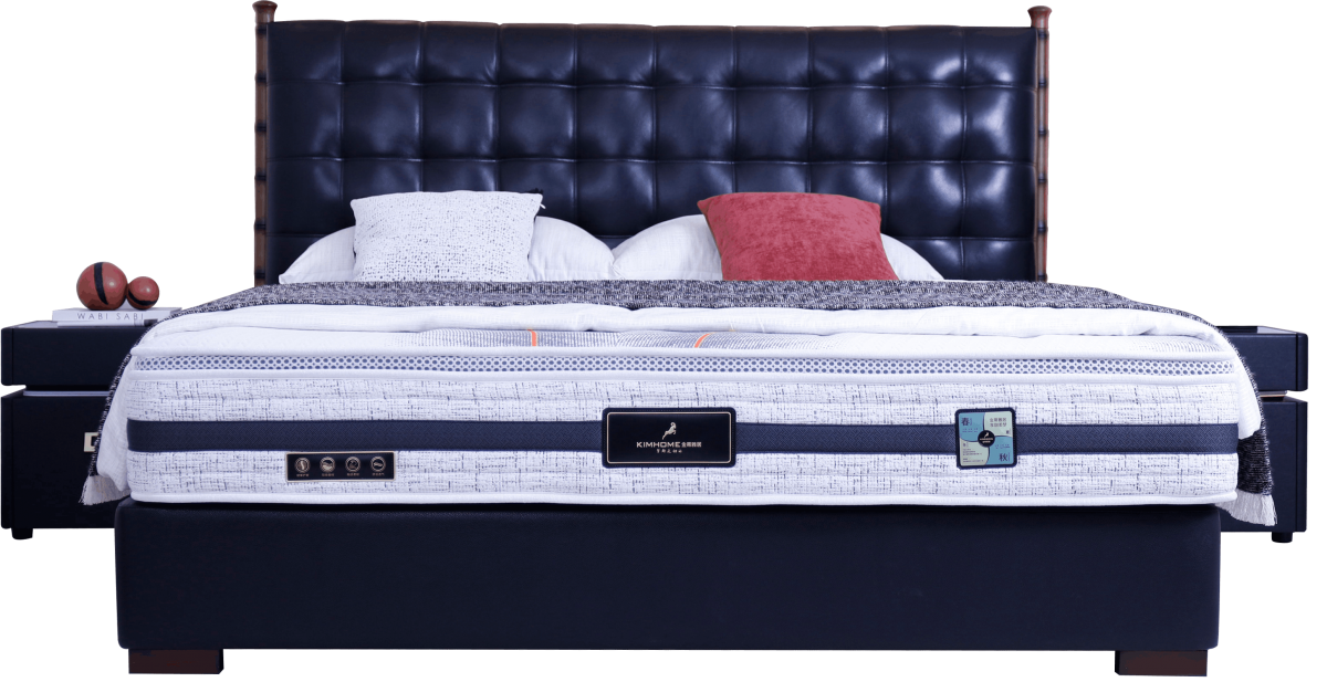 白蜡木,接触面头层牛皮,床头和床边,实木+实木多层板,床背靠包海绵填充,床侧PU皮, 高回弹定型环保海绵