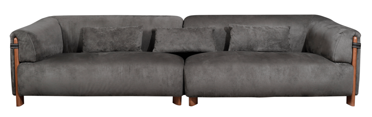 白蜡木底框架,麂皮绒面料,靠包、坐包高回弹海绵填充,俄罗斯进口落叶松框架