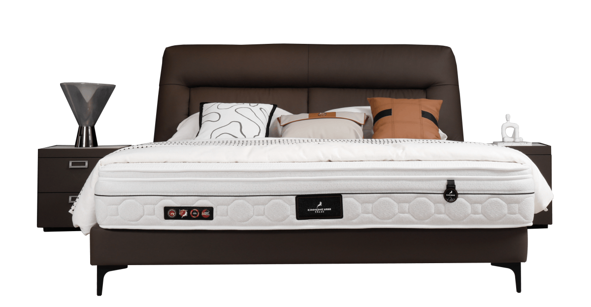 接触面头层牛皮,床头和床边,实木+实木多层板,床背 +床侧PU皮,高回弹定型环保海绵